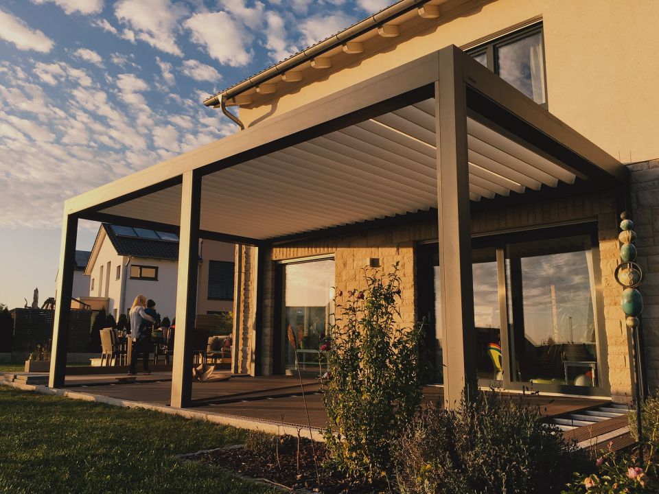 Das Lamellendach ist nahezu ganzjährig nutzbar und bietet ausreichend Schutz vor Sonne, Wind und Regen. So sind Sie von der Witterung unabhängig und können das Leben im Freien in vollen Zügen genießen.